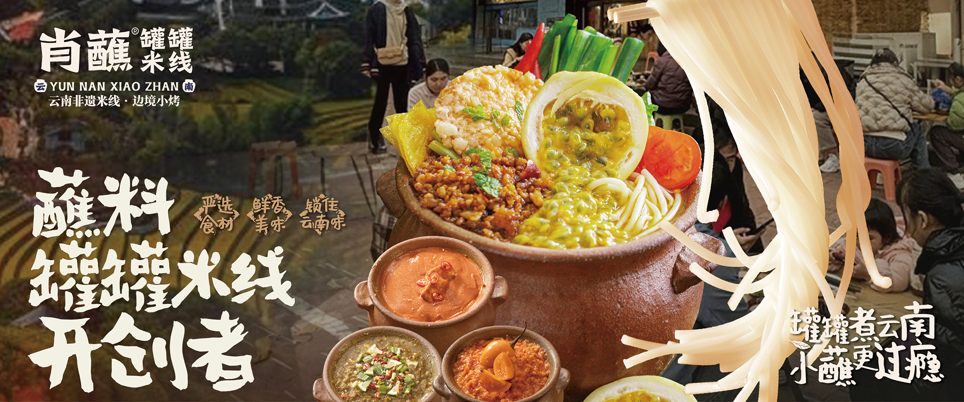 肖阿公的曾孙肖明远带着祖传陶罐与秘方走出大山,在昆明老街创立“肖蘸罐罐米线”。店名“蘸”,结合云南独特的山野佐料,形成了独特的肖氏36味,罐罐锁山野鲜,米线蘸山野味。