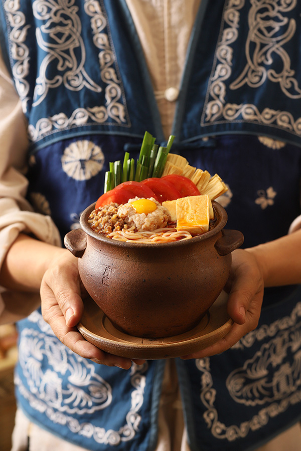 在云南红河梯田的晨雾中,白族陶匠肖氏家族世代以制陶为生。百年前,肖阿公偶然发现,用祖传土罐煨煮米线,陶罐的矿土气息与山野菌菇、筒骨高汤交融,竟能让汤底醇厚如绸,米线吸饱山川灵气。每逢街市,他挑着炭炉与陶罐,在街头支起小摊,“一罐一汤”的烟火气,成了山民们最温暖的记忆。